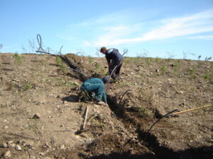 2007年8月31日 池の周囲に植えた景観植物の灌水設備の為にパイプを入れています。