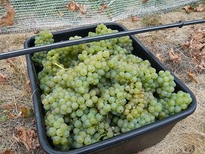 今日はリザーブソーヴィニヨンブランの収穫です。 手摘みにて一房づつ丁寧に良果を選別し摘みとります。