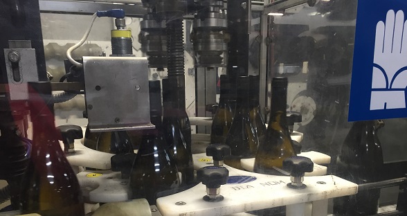 クリーンルームの中で、フランスから直輸入したボトルにワインが注入、ナチュラルコルクで栓打ちされます。