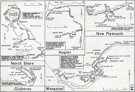 先週、車電車の紹介をしましたが、実はネイピアには1913年から1931年に地震で破壊されるまでトロッコ電車が走ってたんです。 トロッコ電車とは路面電車のことで、町からシェイクスピエアロードを通って、アフリリ港までを運行してました。 地図は昔のニュージーランド内でのトロッコ電車地図、これからわかるようにニュージーランドの主要な町にはほとんどトロッコ電車が走ってたんですね。 今はどこにも見られないのが寂しいです。