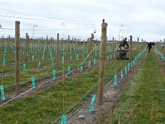 2007年11月に植樹した葡萄畑のブロックでは、支柱にワイヤーを張る作業が始りました。